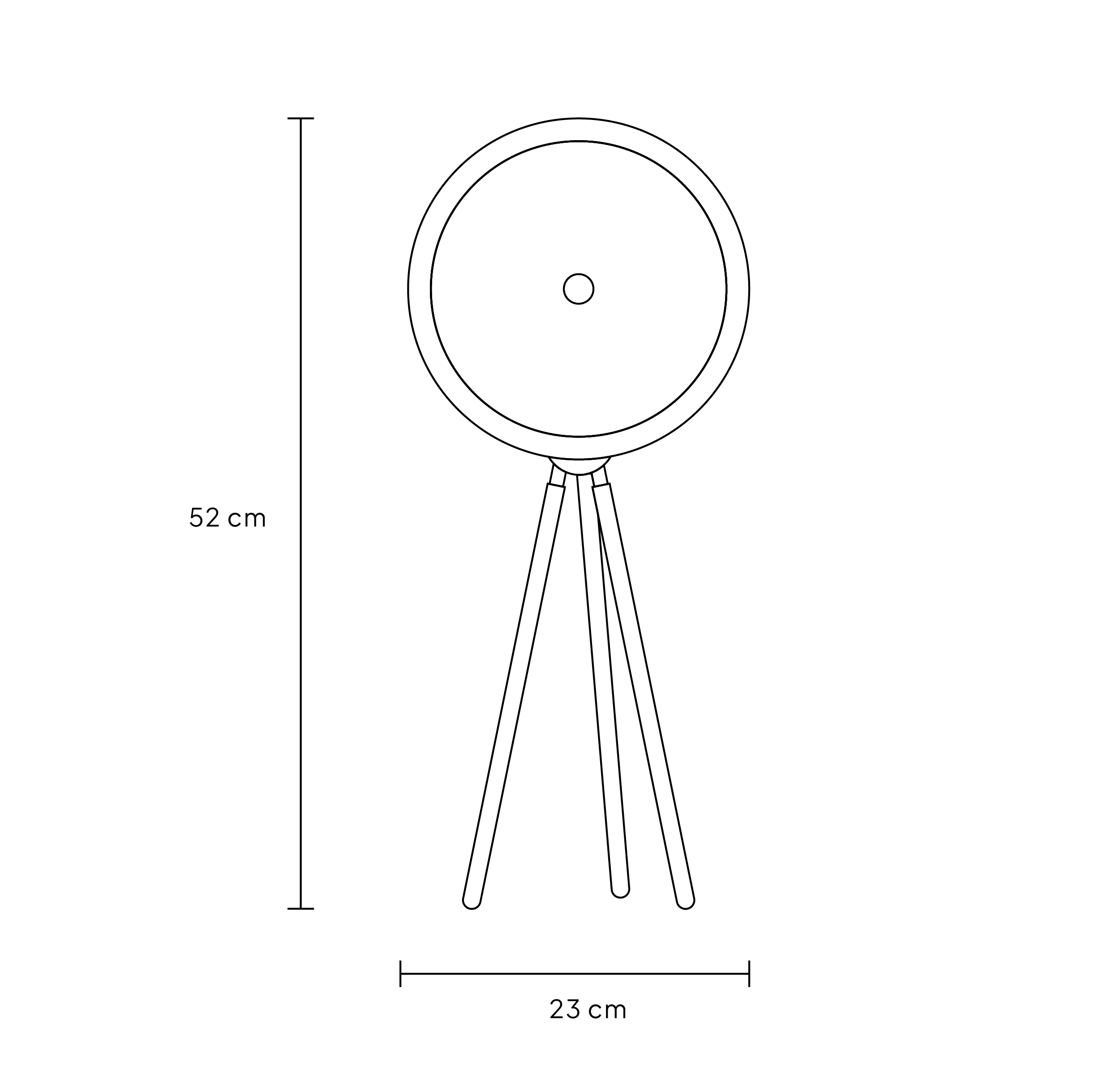 Tripode de mesa, luz indirecta. Terminacion negro microtexturado y detalles en niquel.